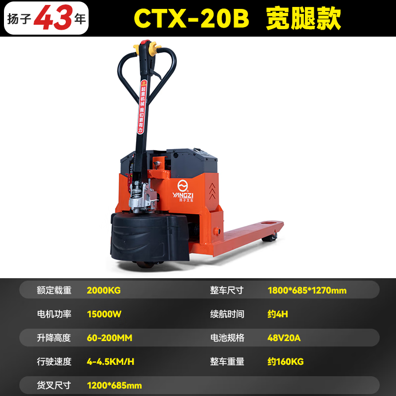 10218旭彩网扬子半电动搬运车CTX,电动行走强劲载重,永磁无刷电机/高品质油缸/铅酸锂电可选