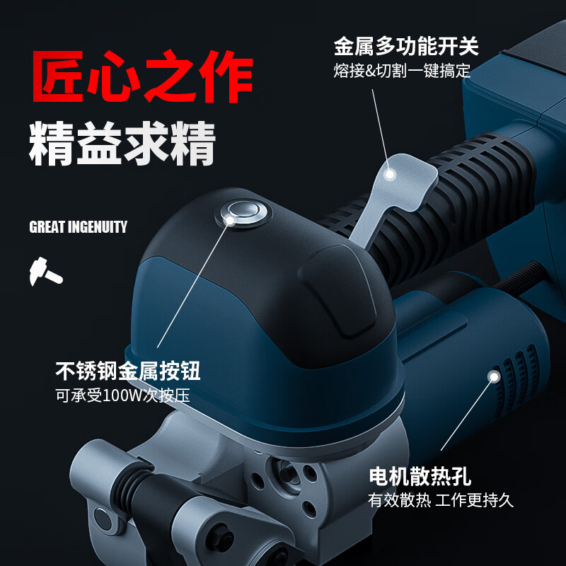 10218旭彩网强劲动力超长续航,手持电动打包机,5500N强劲拉力,铜芯电机低音转轴,4000MA*2双电池充电仅需90分钟