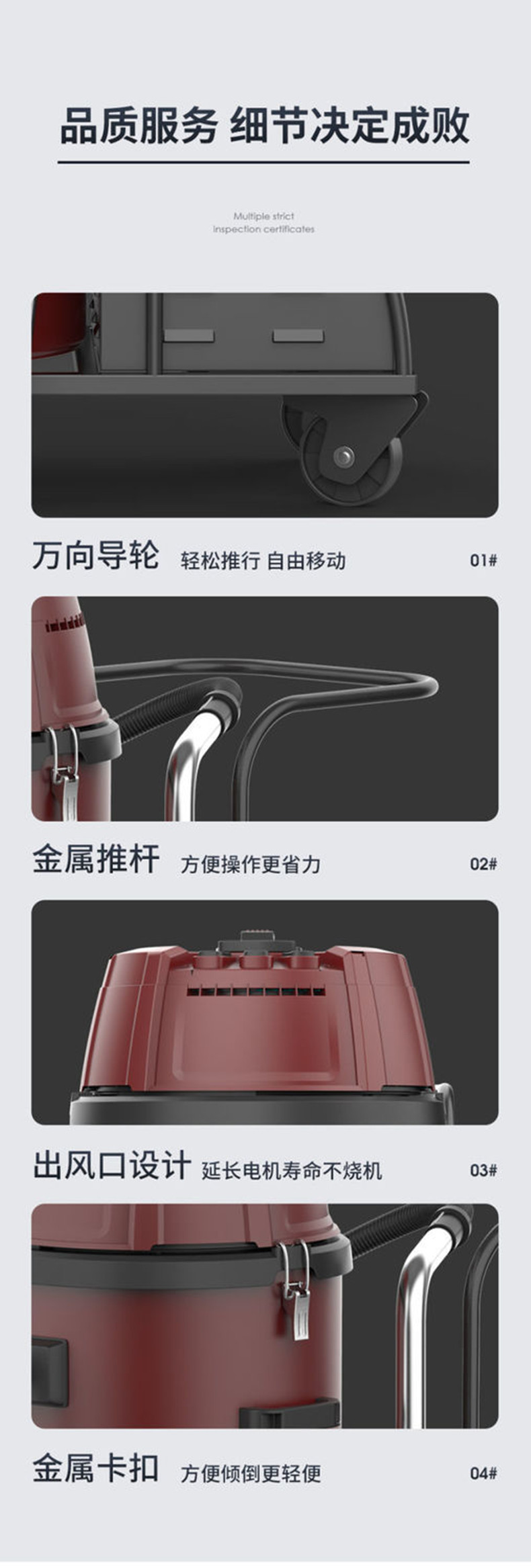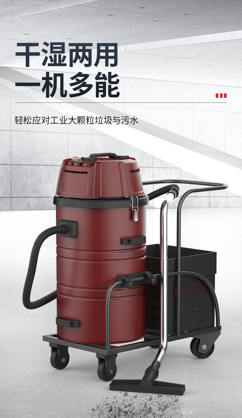 扬子C2工业吸尘器适用多种场景使用需求,能够完成大颗粒物和液体垃圾清洁;配备大功率铜芯电机;80L工业级大容量垃圾箱,无需反复倾倒,提升使用效率;设备配备免维护电池,满足大面积使用需求。