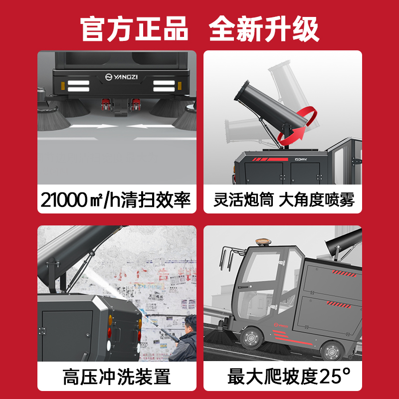 扬子扫地机YZ-S15,大面积清扫效率高,省时省力省心,扫吸二合一 /高压雾炮除尘/品牌电池/高压喷枪/一键操作/LED大灯