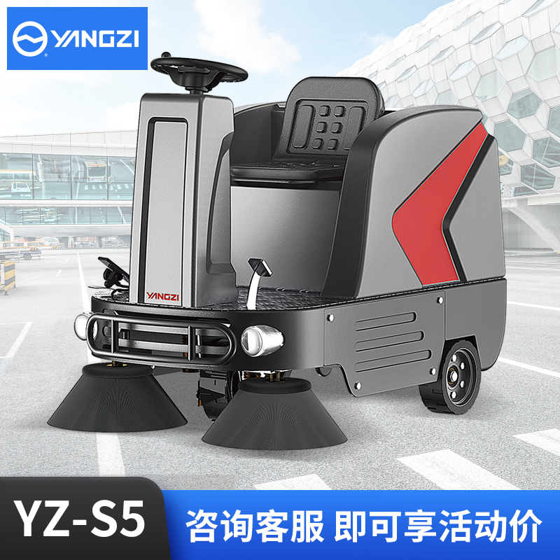 扬子S5驾驶式扫地机配备了万向轮和安全扶手,使用自主研发的高品质清洁专用电机,使用更加安全。配备电动振尘装置,滚筒式过滤器振尘设计,避免设备在使用过程中振尘不干净,清扫效率低等问题。 S5驾驶式扫地机在使用过程中可以实现持续通风散热,在长时间使用过程中起到保护设备的作用,配备液压碟刹和四组高强度减震器,整机采用滚塑工艺,实现抗压防撞。