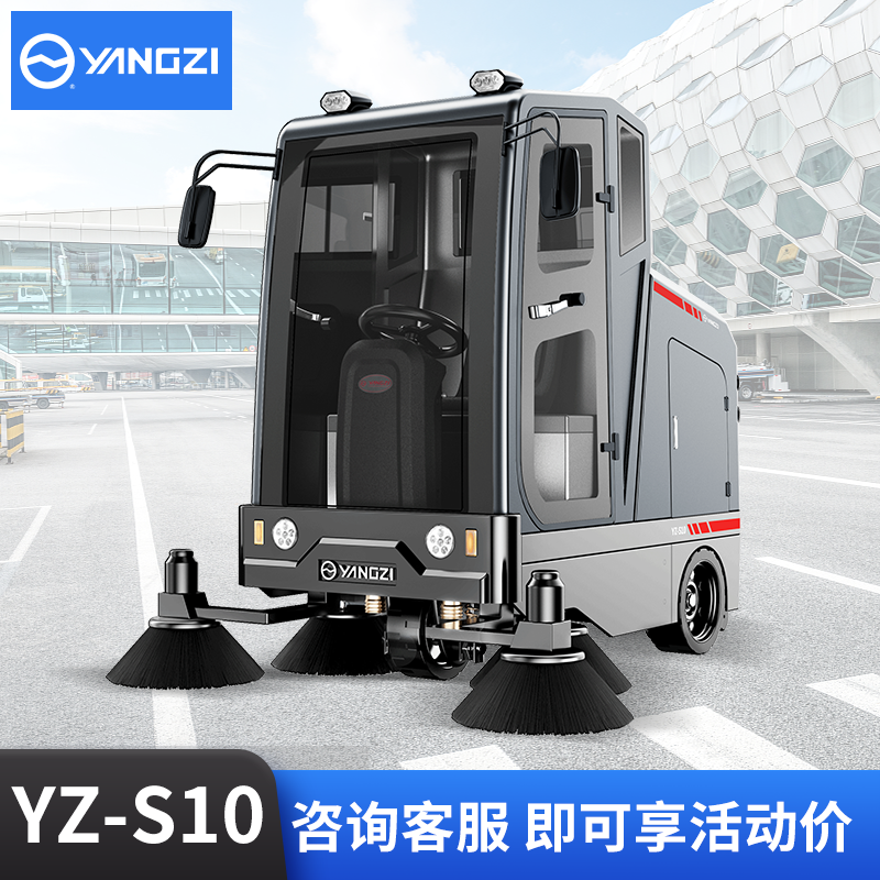 10218旭彩网扬子S10驾驶式扫地机方向盘操作更加灵活方便,配备了舒适座椅;脚刹和警示灯设计提升了设备的操作安全性能;S10驾驶式扫地机采用全封闭设计,更适合在户外使用;一次充电能够实现超长续航,避免了使用过程中反复充电的问题,喷雾设计解决了清扫过程中粉尘过大的问题。
