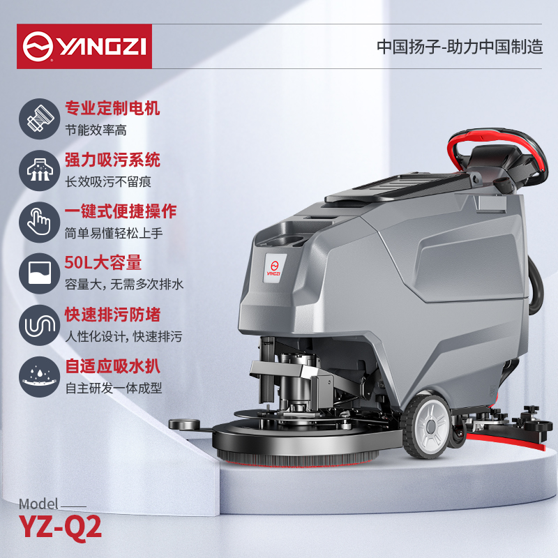 10218旭彩网扬子洗地机Q2辅助轮+动力刷盘双配置,轻松不费力清洁更省心,LDPE滚塑工艺,耐高温耐腐蚀超耐用机身,3290㎡/h清洁效率配合动力系统更快更洁净。