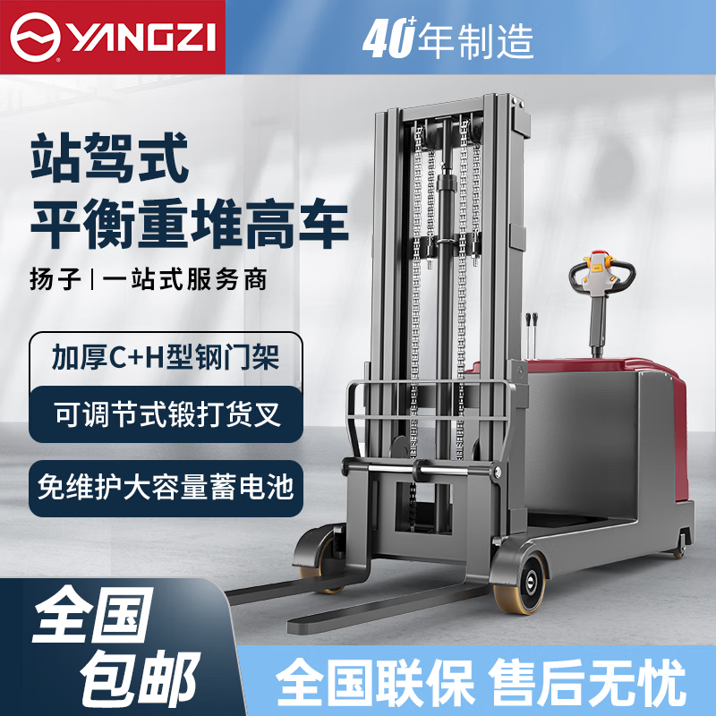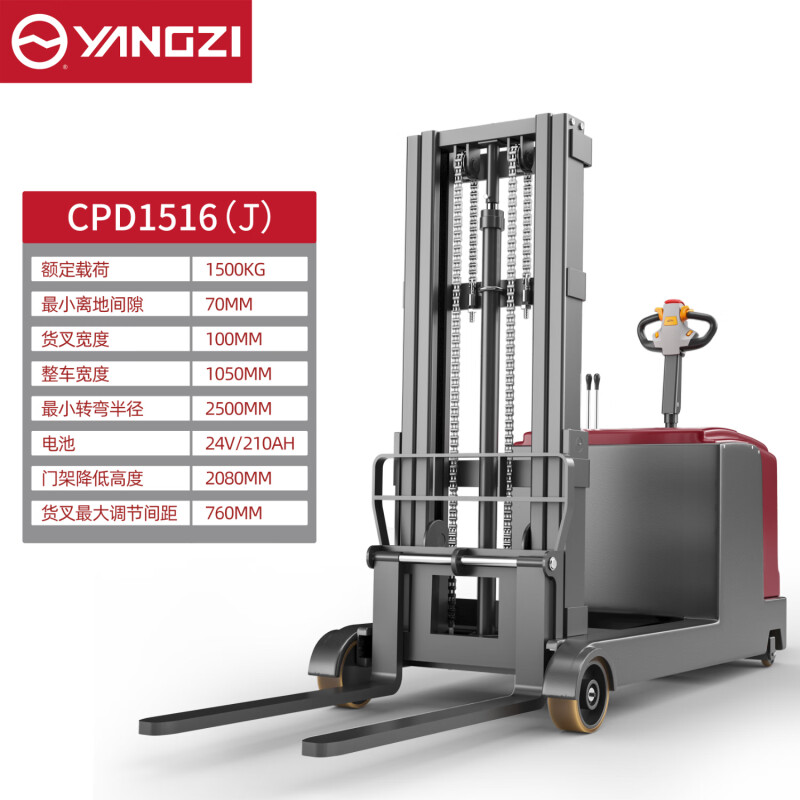 扬子全电动站驾式平衡重堆高车CPD-J,强劲高效操作便捷,一体铸造式油缸/智能手柄/不挑托盘