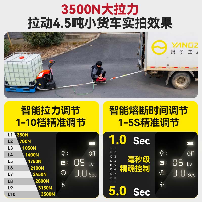 A001智能全自动打包机,3500N强劲大拉力,4000MA特斯拉同款锂电池,超大按钮防滑螺纹,操作简单便捷,人体力学防滑设计,轻松手持不打滑