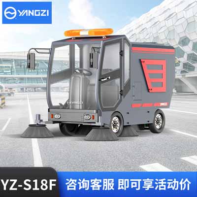 10218旭彩网扬子S18F电动扫地车配备4个强劲边刷,提升地面清洁效果,可根据用户需求配备高压清洗泵,清除地面顽固污渍。电池充满电后可连续工作6h,满足大面积场所卫生清洁需求。