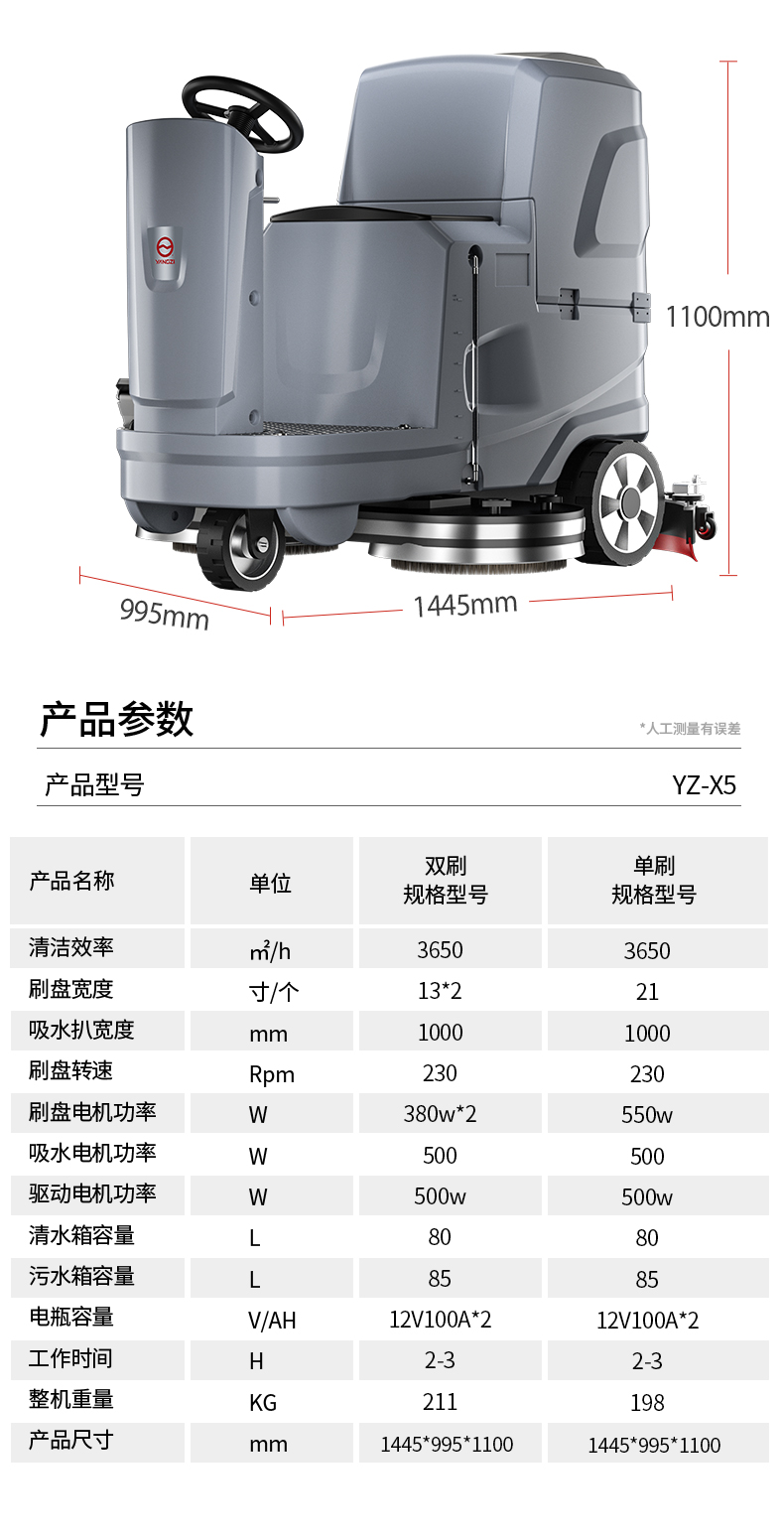 10218旭彩网扬子X5工业洗地机有单刷加液款、单刷免维护款和双刷免维护款三种型号,客户在选择的时候可以根据使用环境和使用需求的不同选择合适的设备。X5工业洗地机配备了漏电保护装置,使用更加安全,采用双出水系统,避免使用过程中的清水自流,清水过滤时杂物进入电磁阀的情况,减少洗地机设备在使用过程中存在的问题。配备不锈钢吸水扒和防腐耐磨的吸水胶条,使用寿命更长。